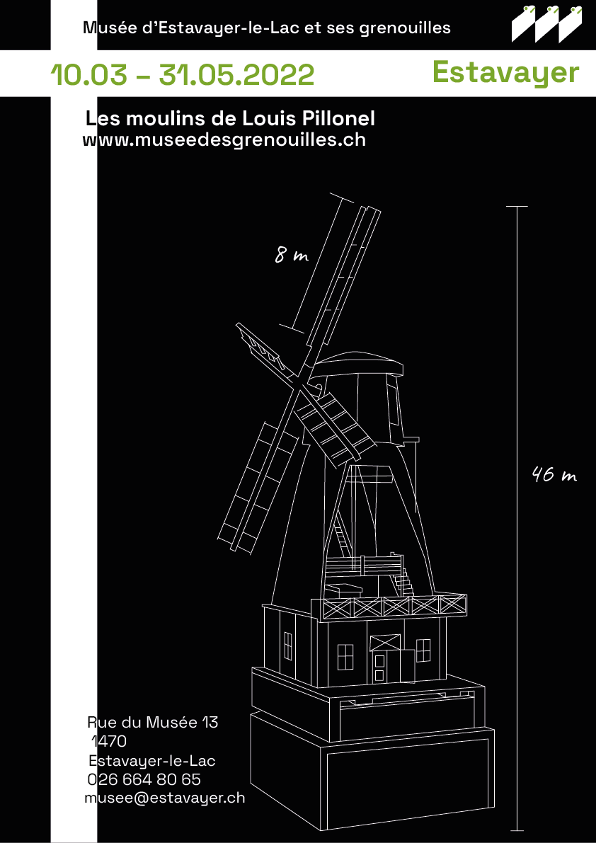 Il s'agit d'une affiche promotionnelle en format A3 réalisé sur Illustrator. Mon mandant a été le musée d'Estavayer-le-Lac, l'affiche est destinée pour l'exposition temporaire de maquettes de moulins. Le projet est effectué dans un cadre pédagogique.